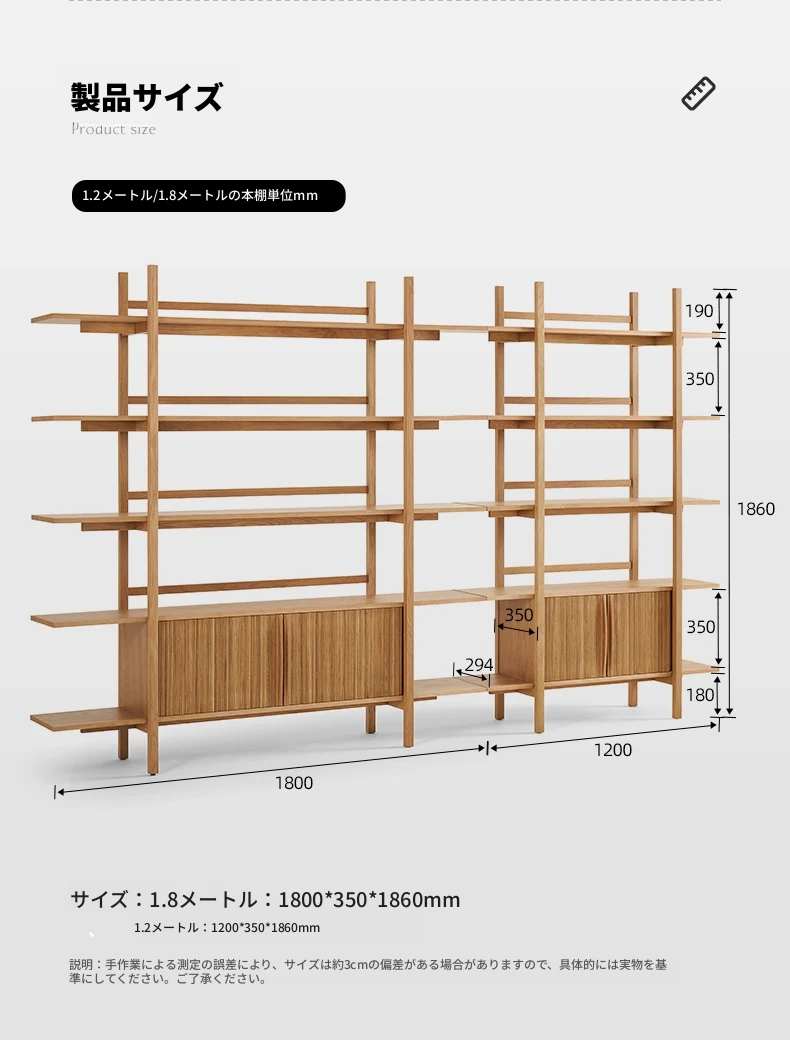 【ホワイトオーク-ナチュラルカラー】1.2m本棚+1.8m本棚