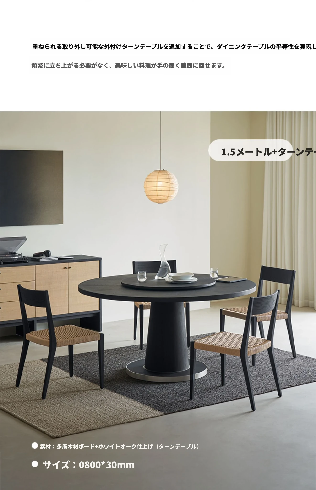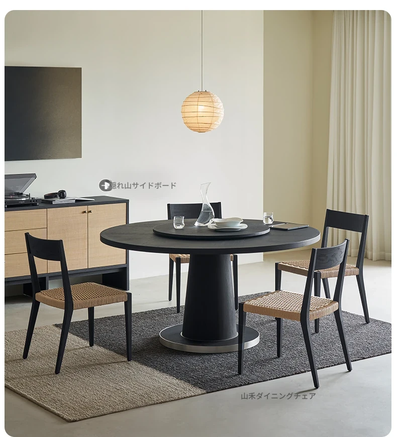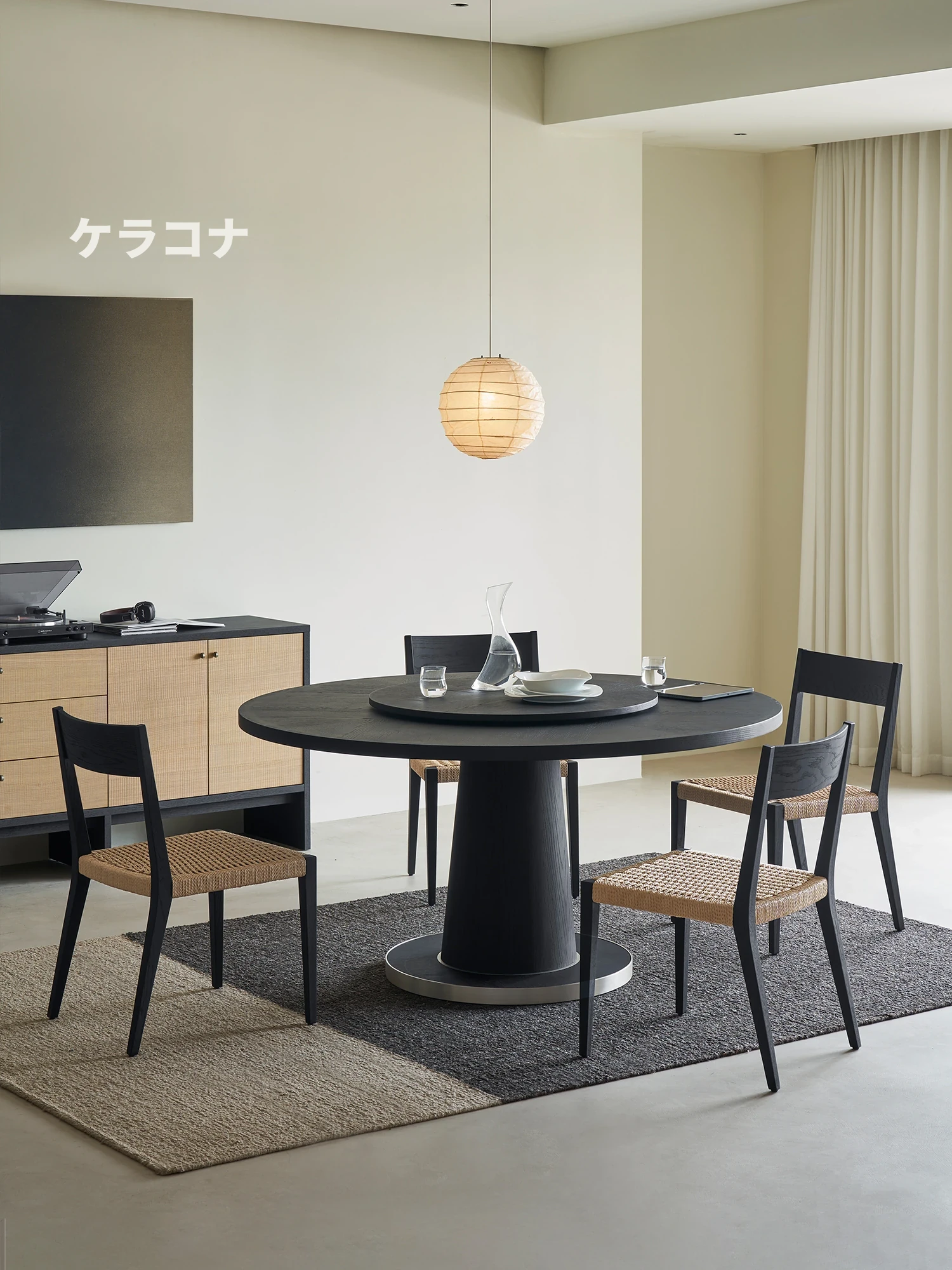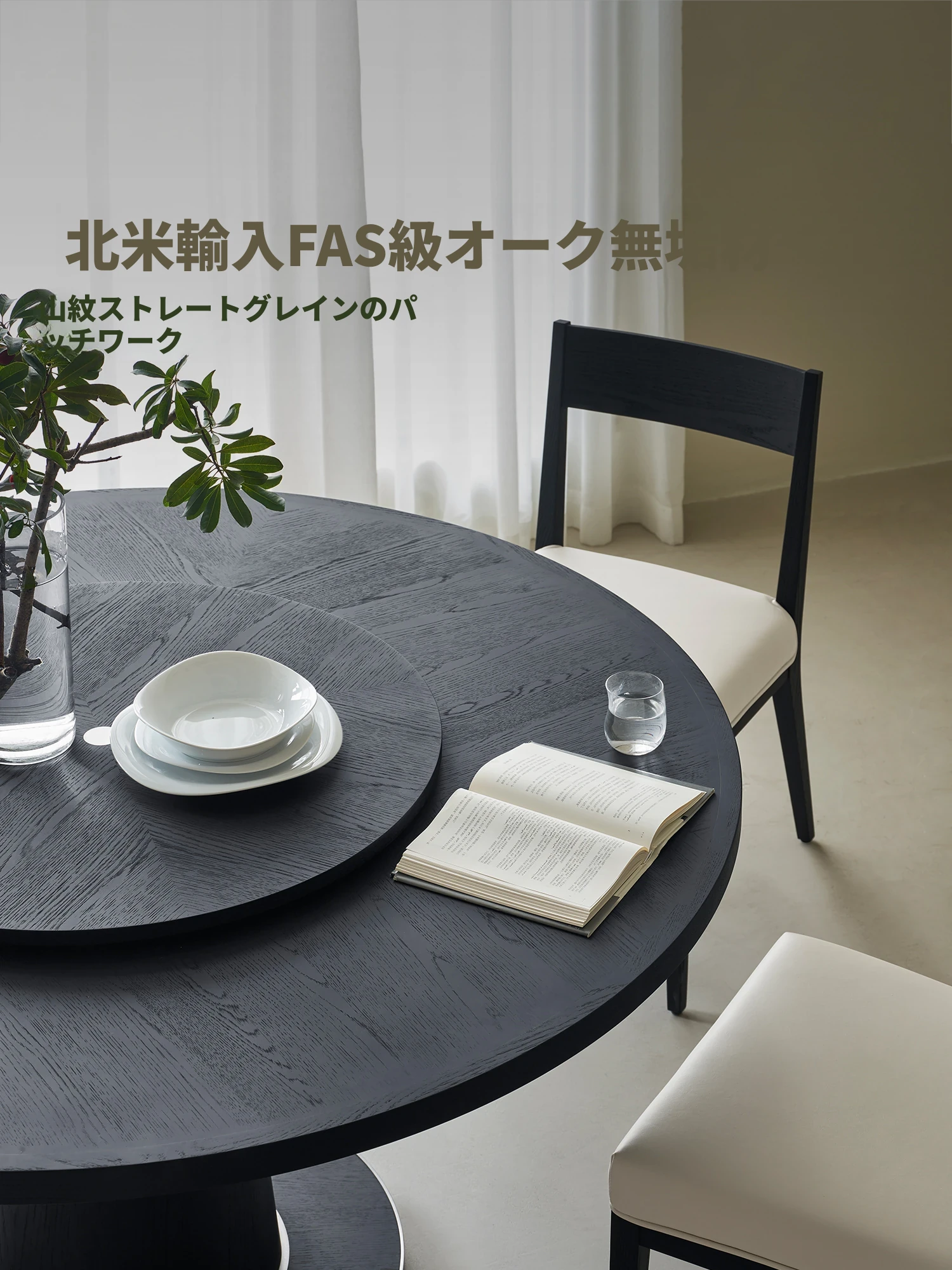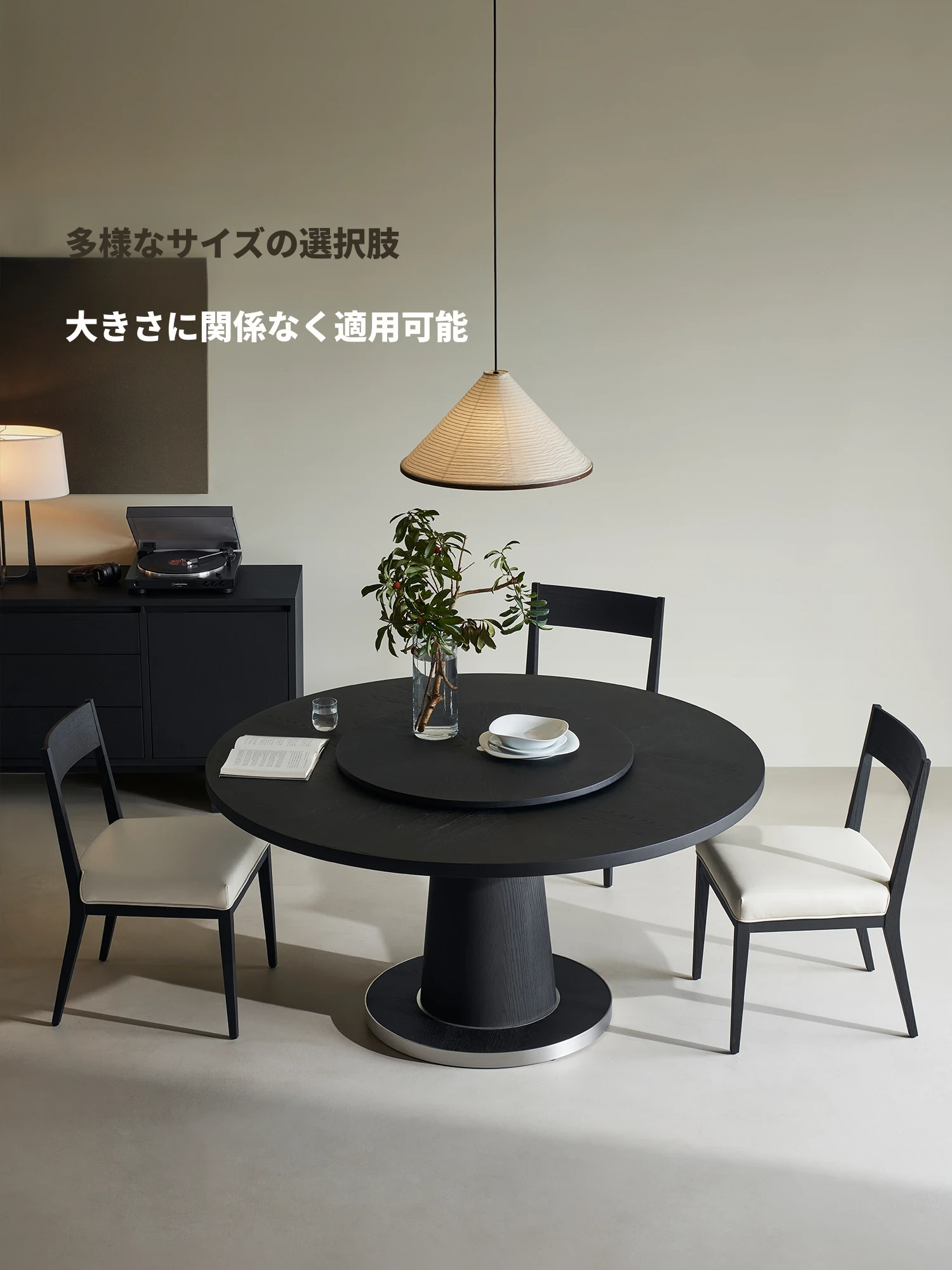 Kena可纳/和風サークルテーブル - 無垢材の侘び寂びデザイン、黒色のダイニングテーブルとチェアセット、回転式卓上付き!家庭での食事をより特別に演出します!
