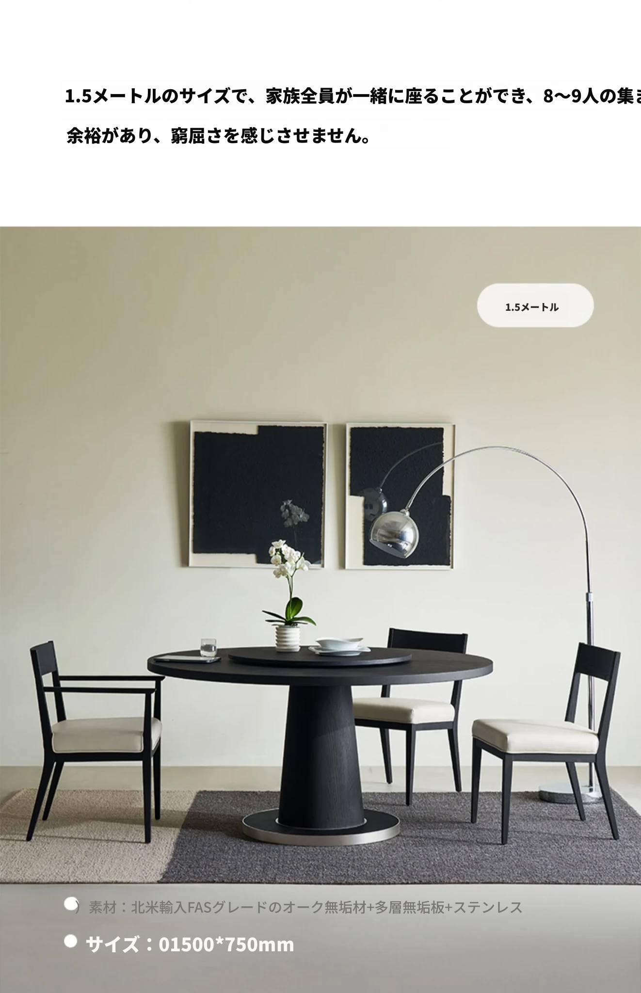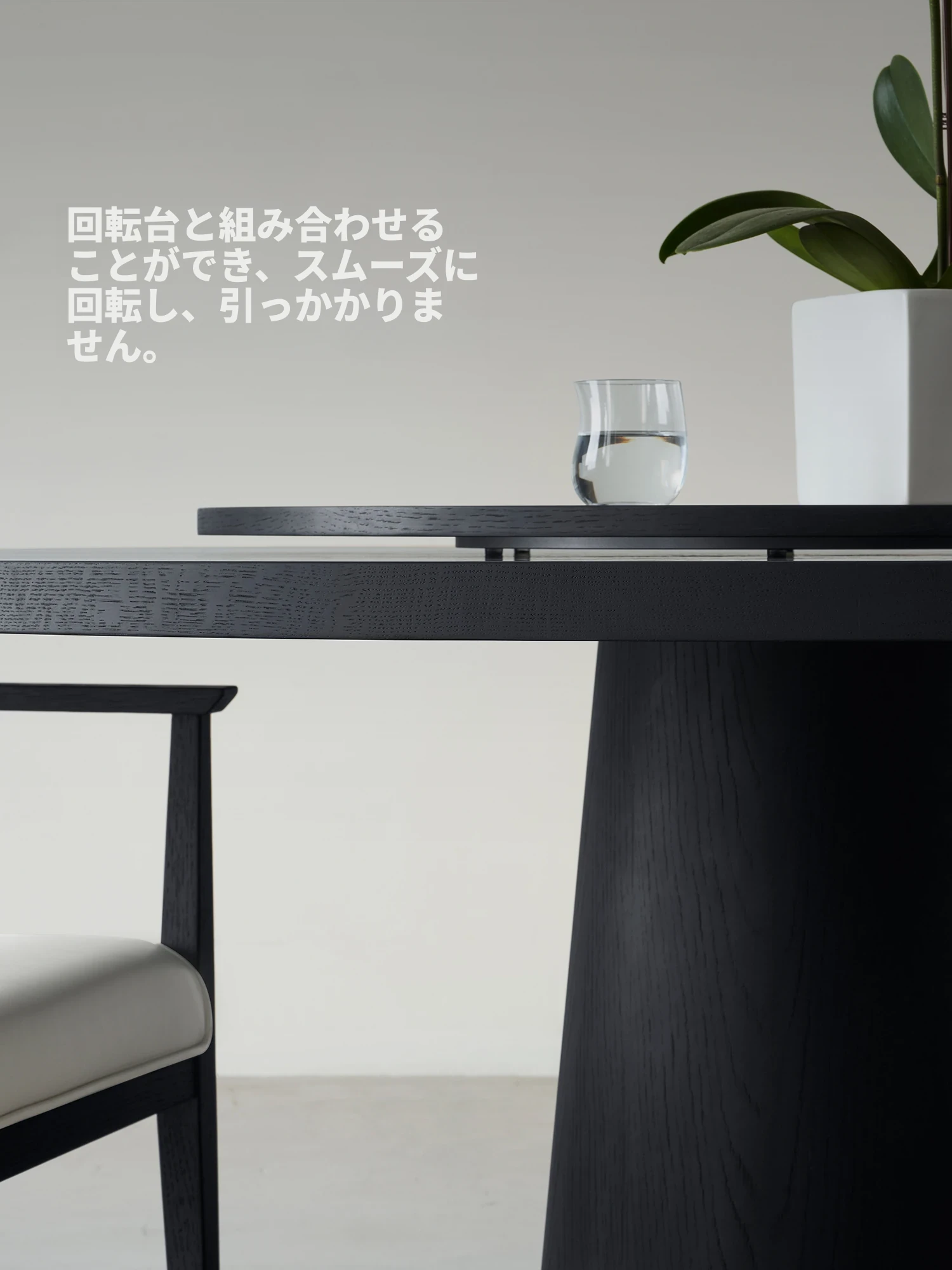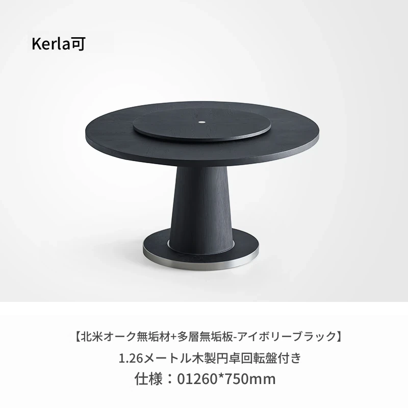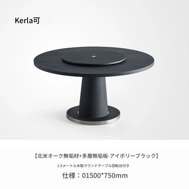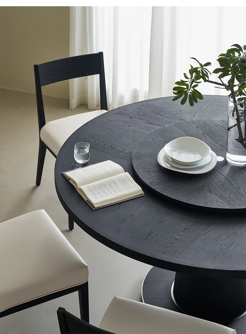 Kena可纳/和風サークルテーブル - 無垢材の侘び寂びデザイン、黒色のダイニングテーブルとチェアセット、回転式卓上付き!家庭での食事をより特別に演出します!