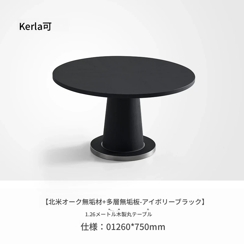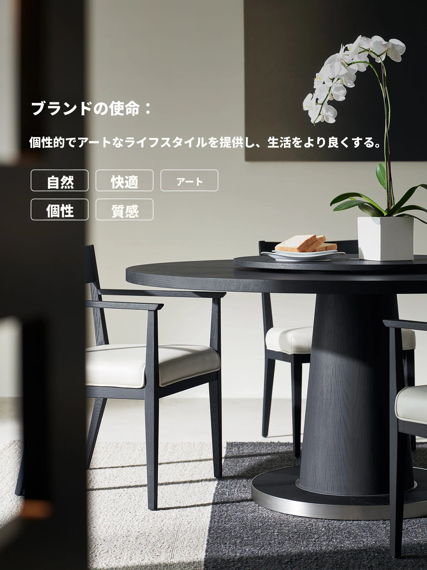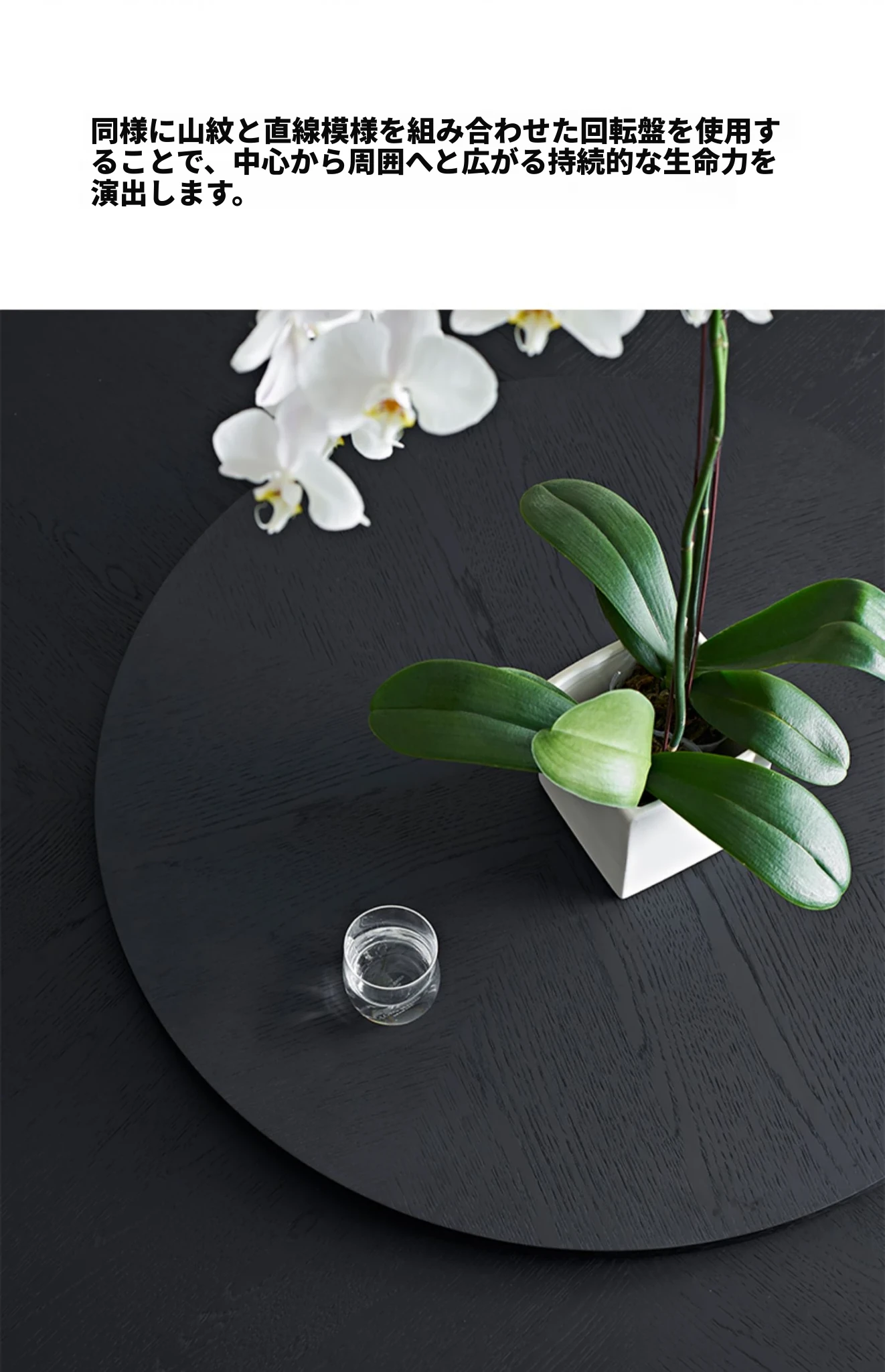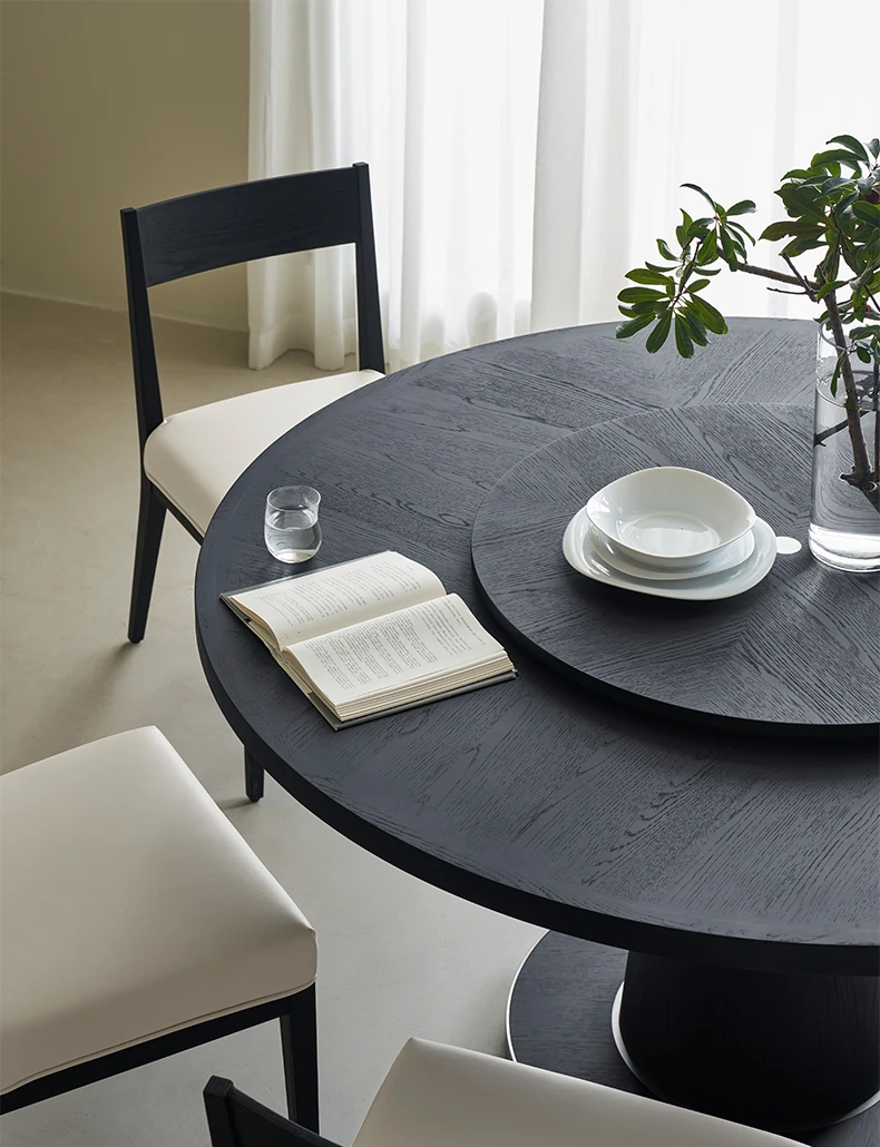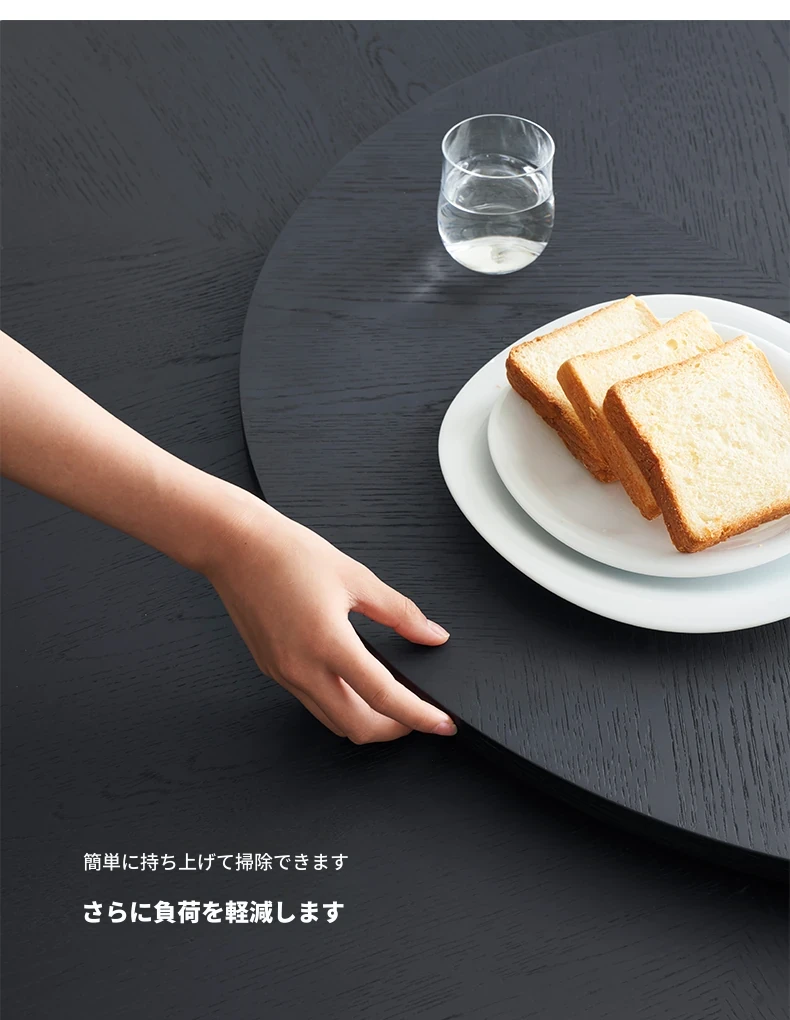 Kena可纳/和風サークルテーブル - 無垢材の侘び寂びデザイン、黒色のダイニングテーブルとチェアセット、回転式卓上付き!家庭での食事をより特別に演出します!
