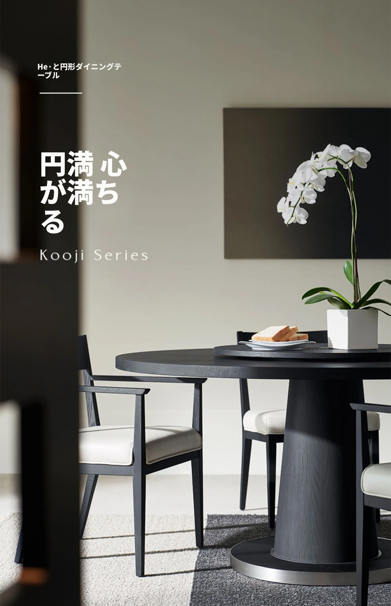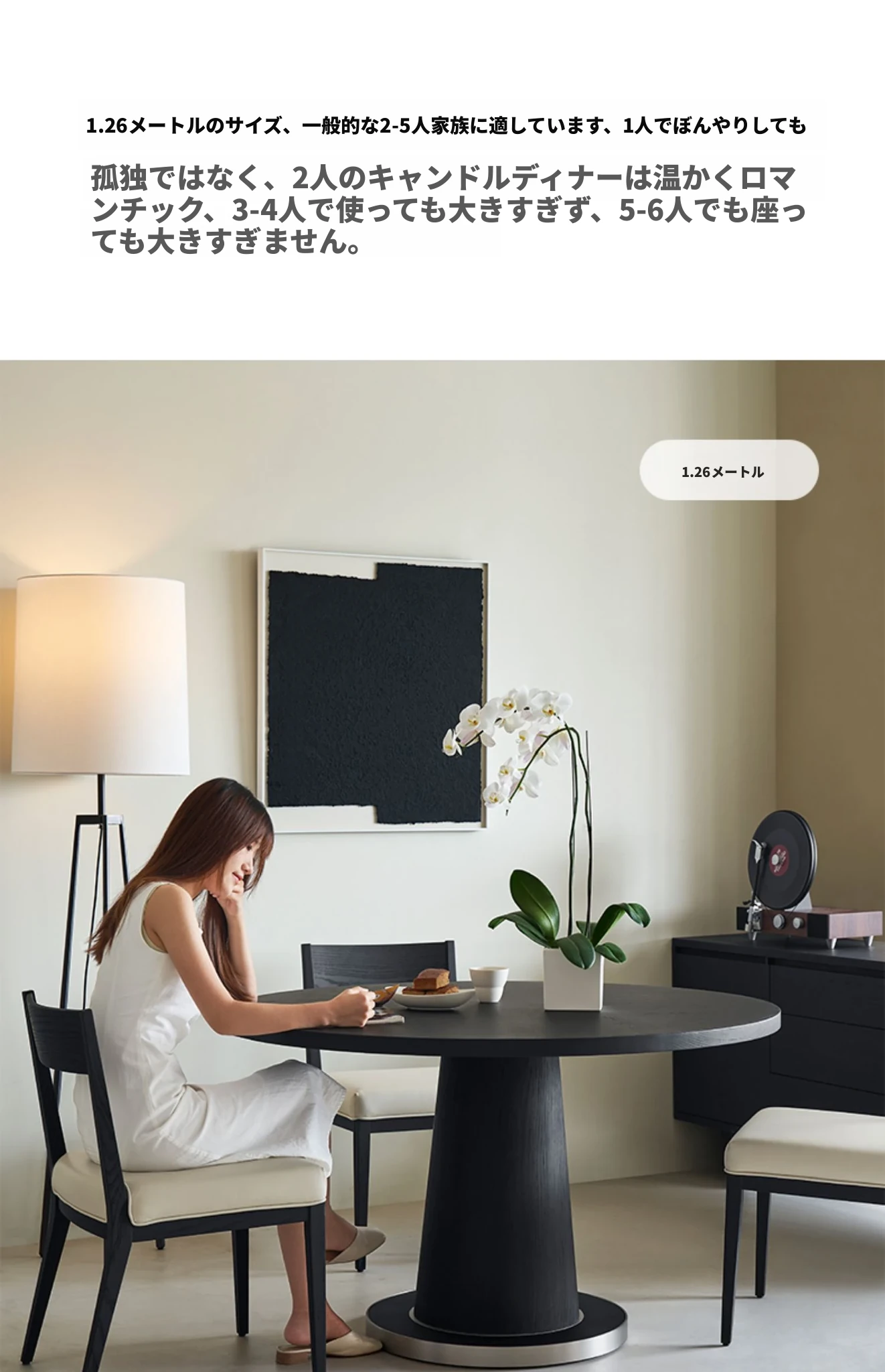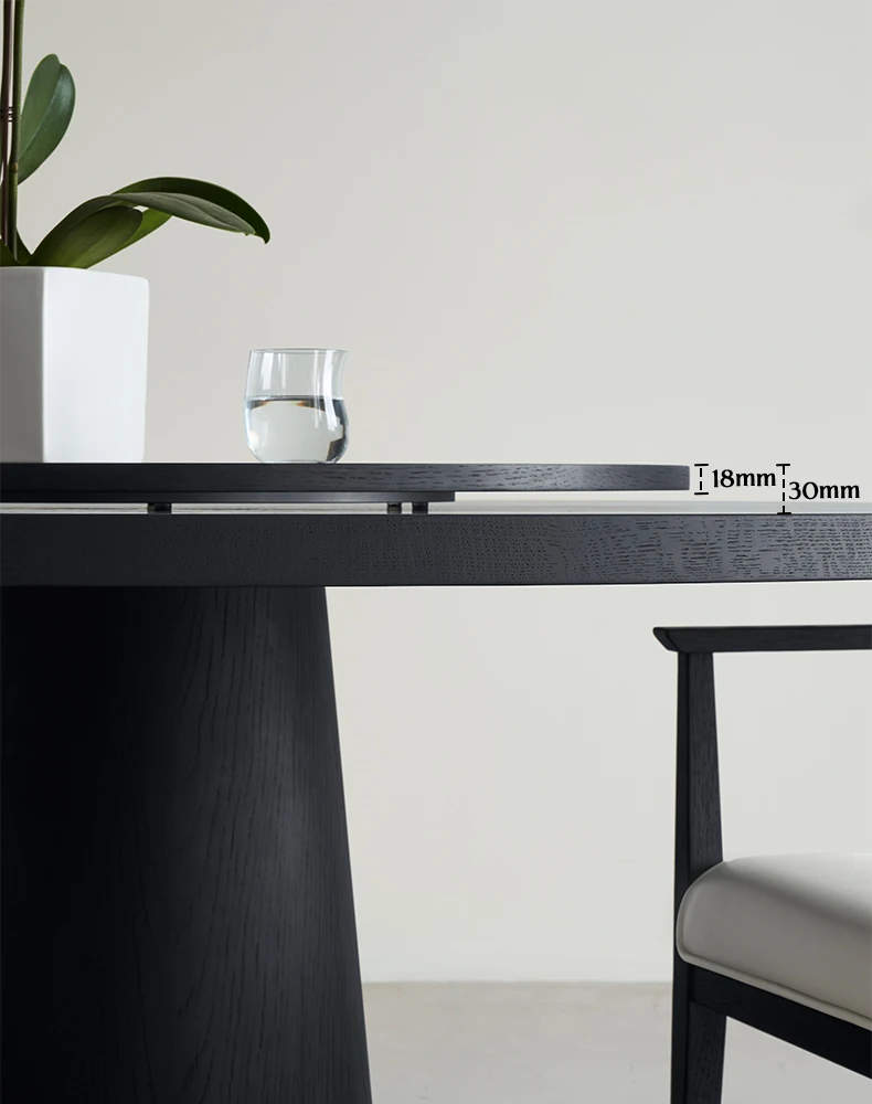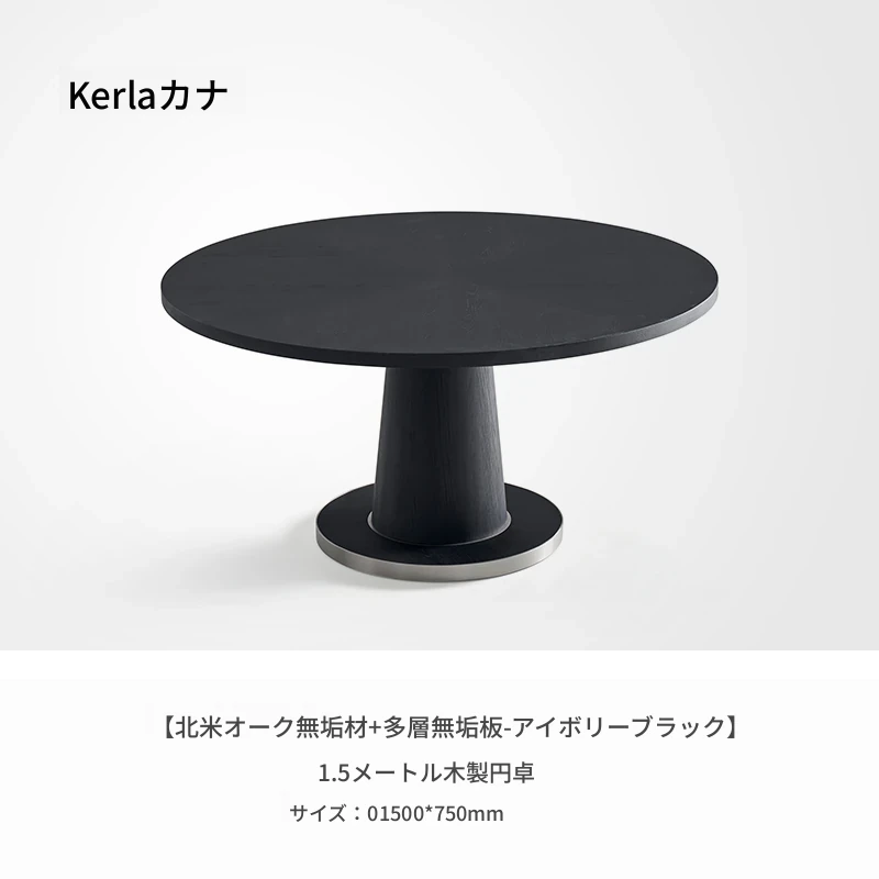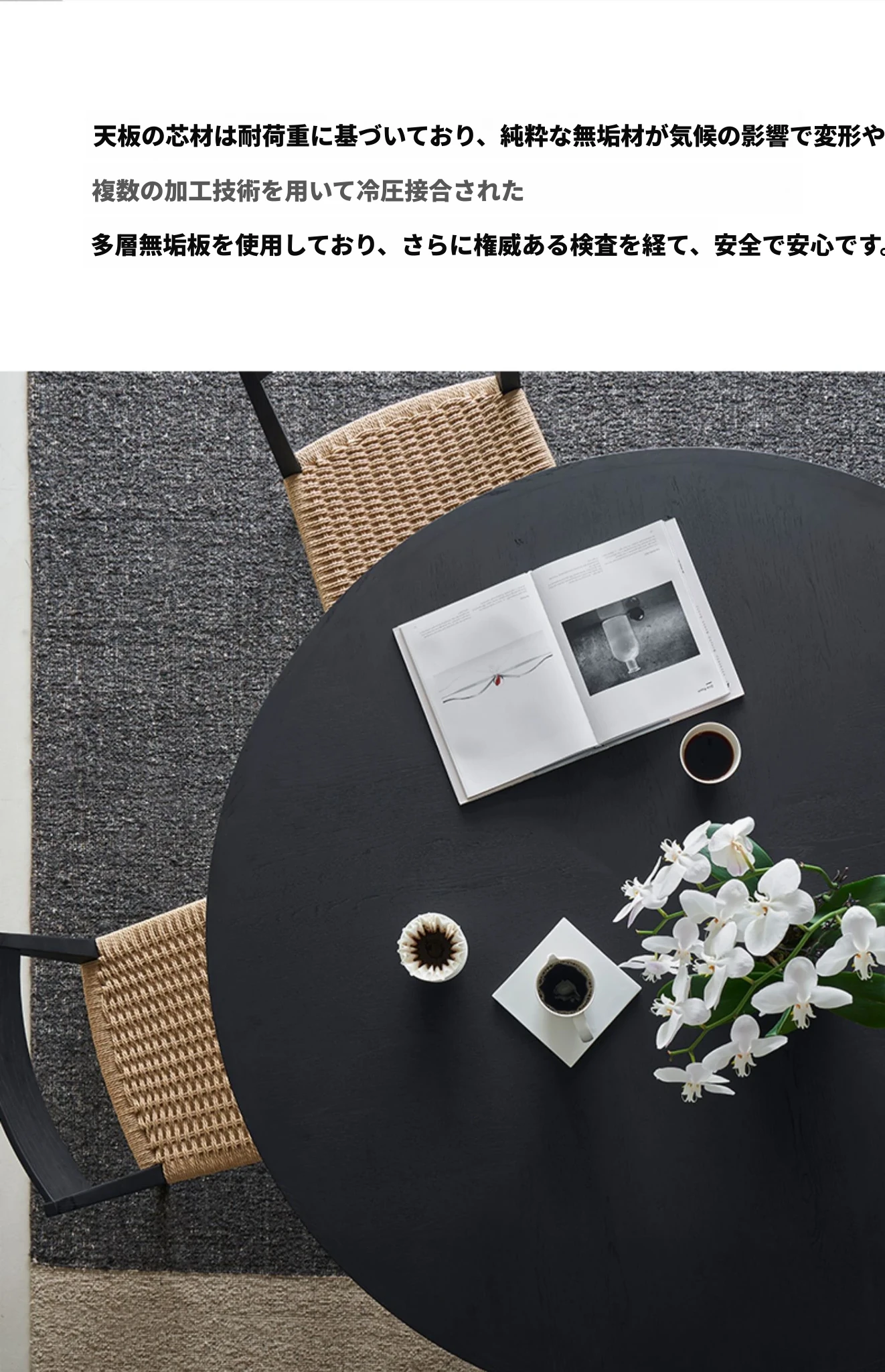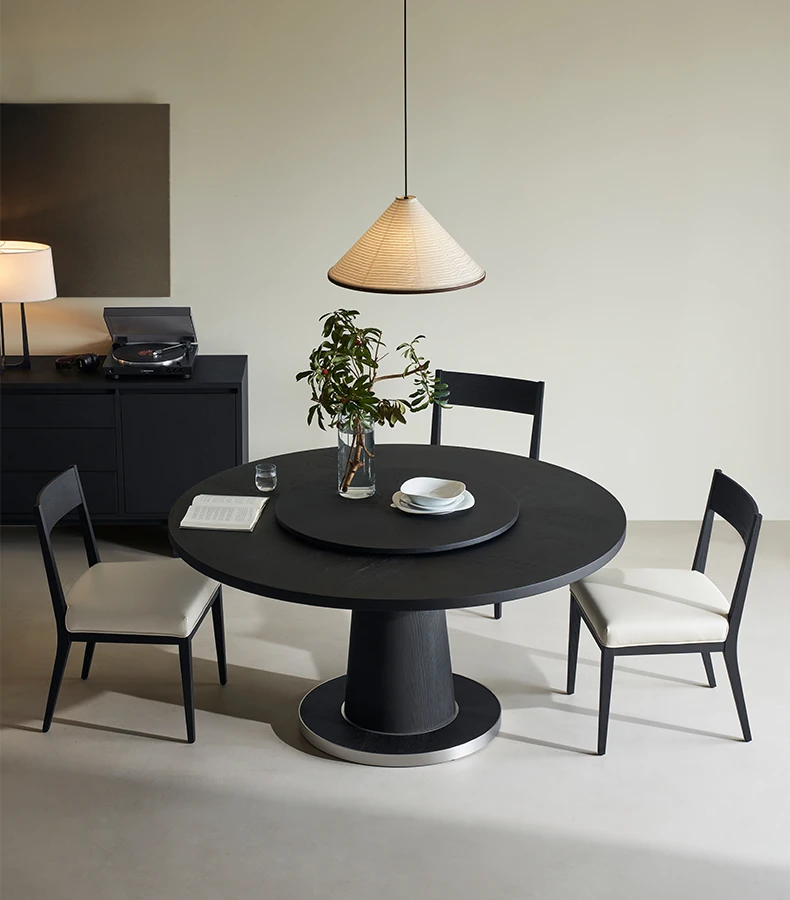 Kena可纳/和風サークルテーブル - 無垢材の侘び寂びデザイン、黒色のダイニングテーブルとチェアセット、回転式卓上付き!家庭での食事をより特別に演出します!