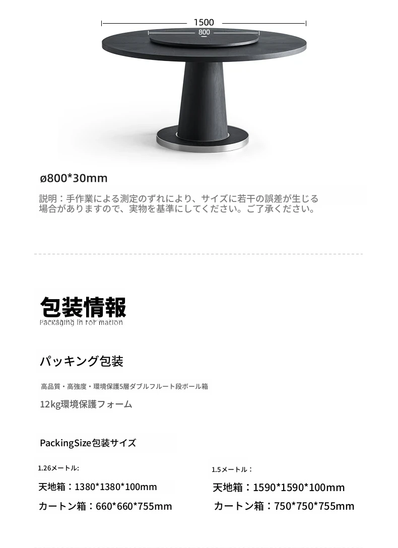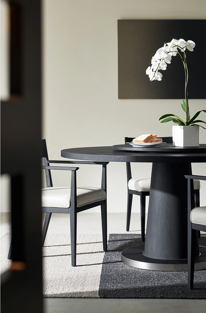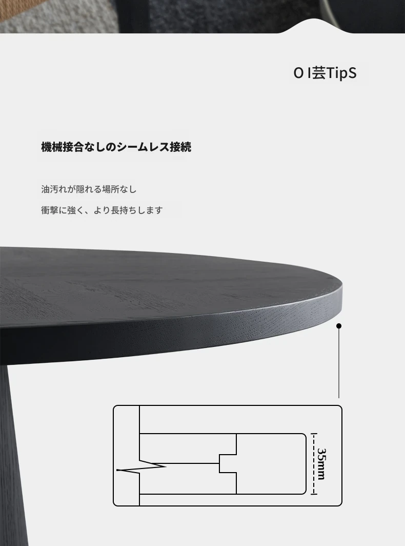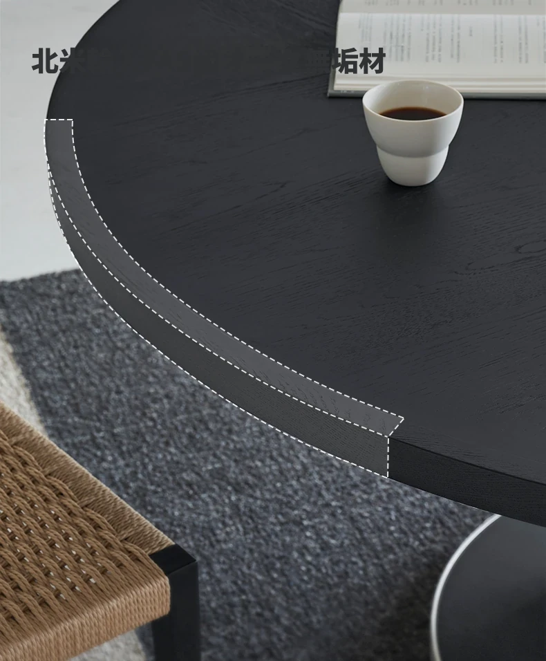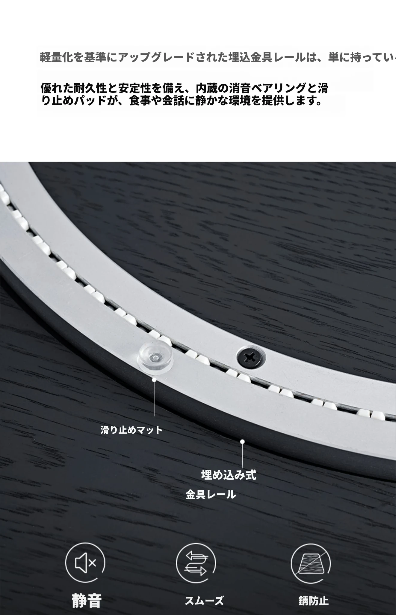 Kena可纳/和風サークルテーブル - 無垢材の侘び寂びデザイン、黒色のダイニングテーブルとチェアセット、回転式卓上付き!家庭での食事をより特別に演出します!
