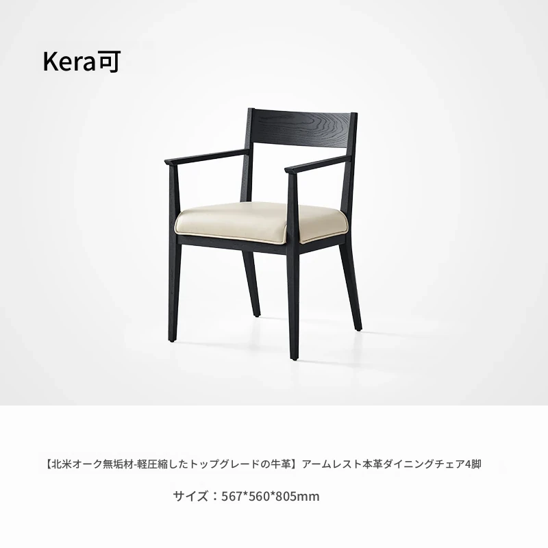 【アイボリーブラック-本革ソフトパッケージ】アーム付きダイニングチェア4脚