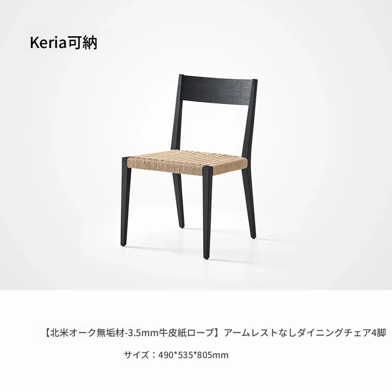 【アイボリーブラック-編み込みタイプ】アームなしダイニングチェア4脚