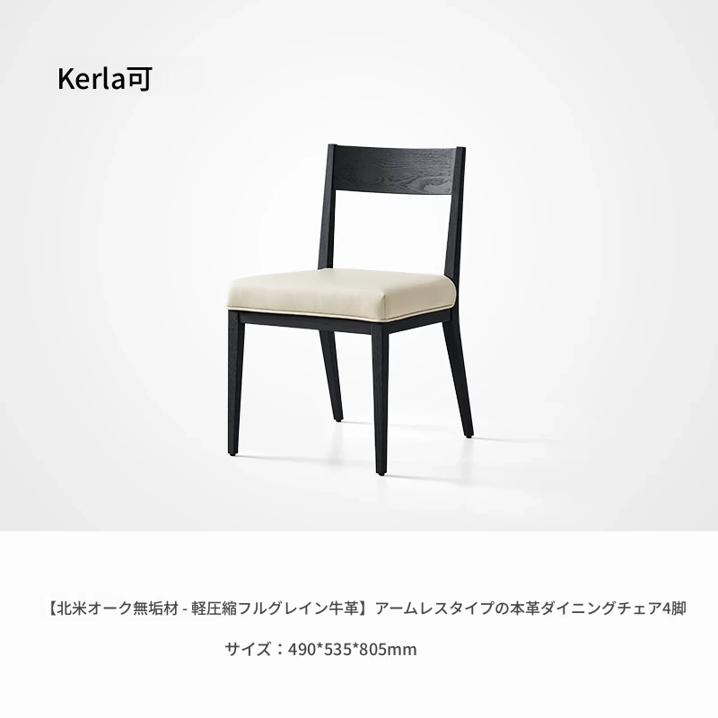 【アイボリーブラック-本革ソフトパッケージ】アームなしダイニングチェア4脚