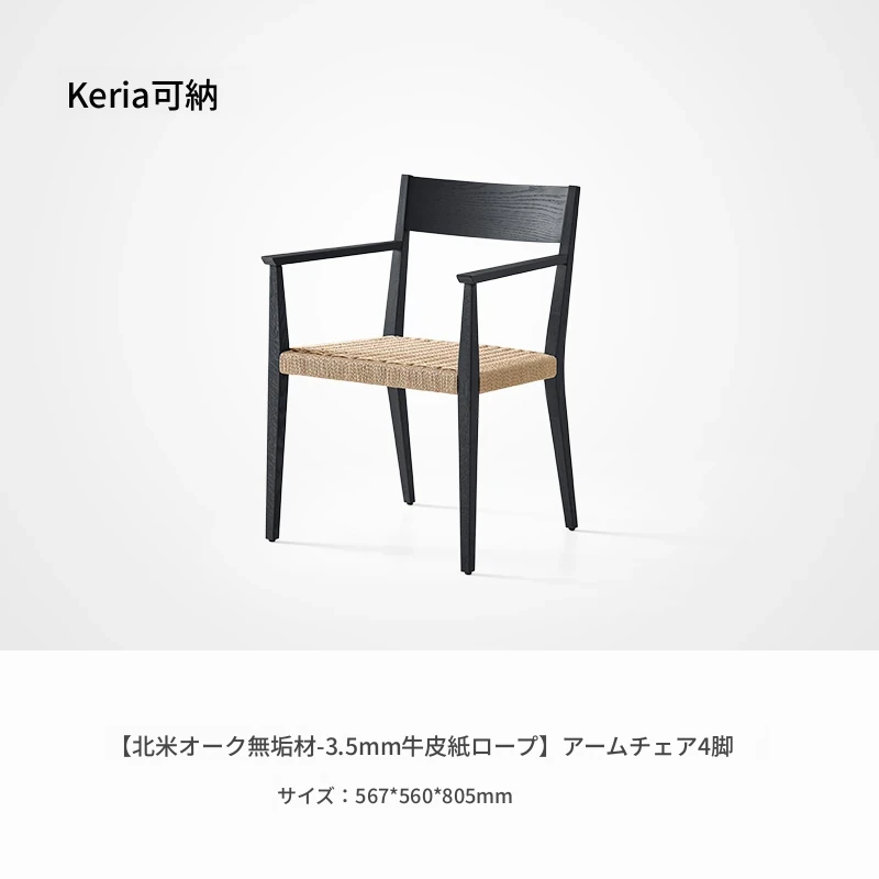 【アイボリーブラック-編み込みタイプ】アーム付きダイニングチェア4脚