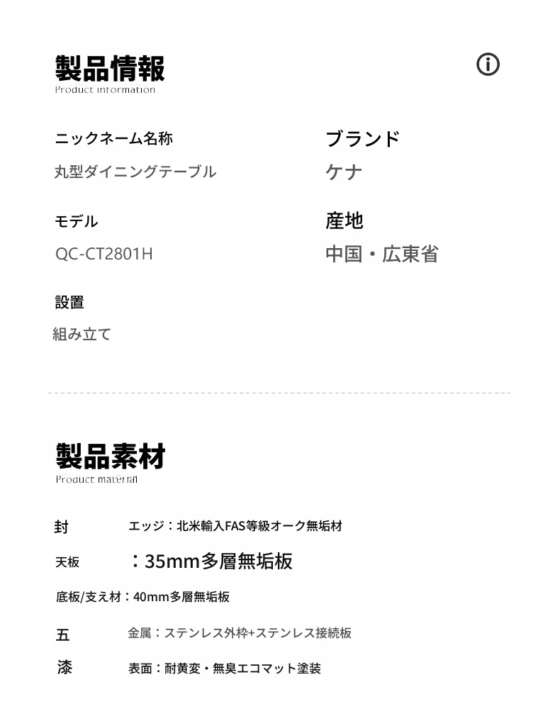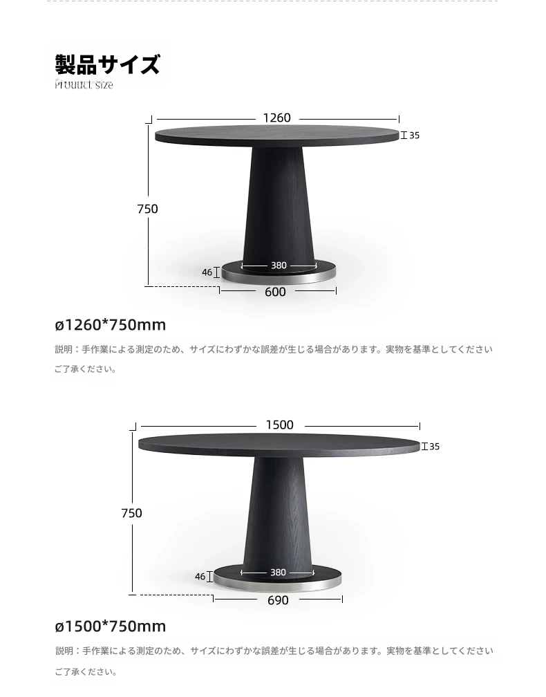 【北米輸入オーク-アイボリーブラック】1.5メートル円形ダイニングテーブル 在庫あり