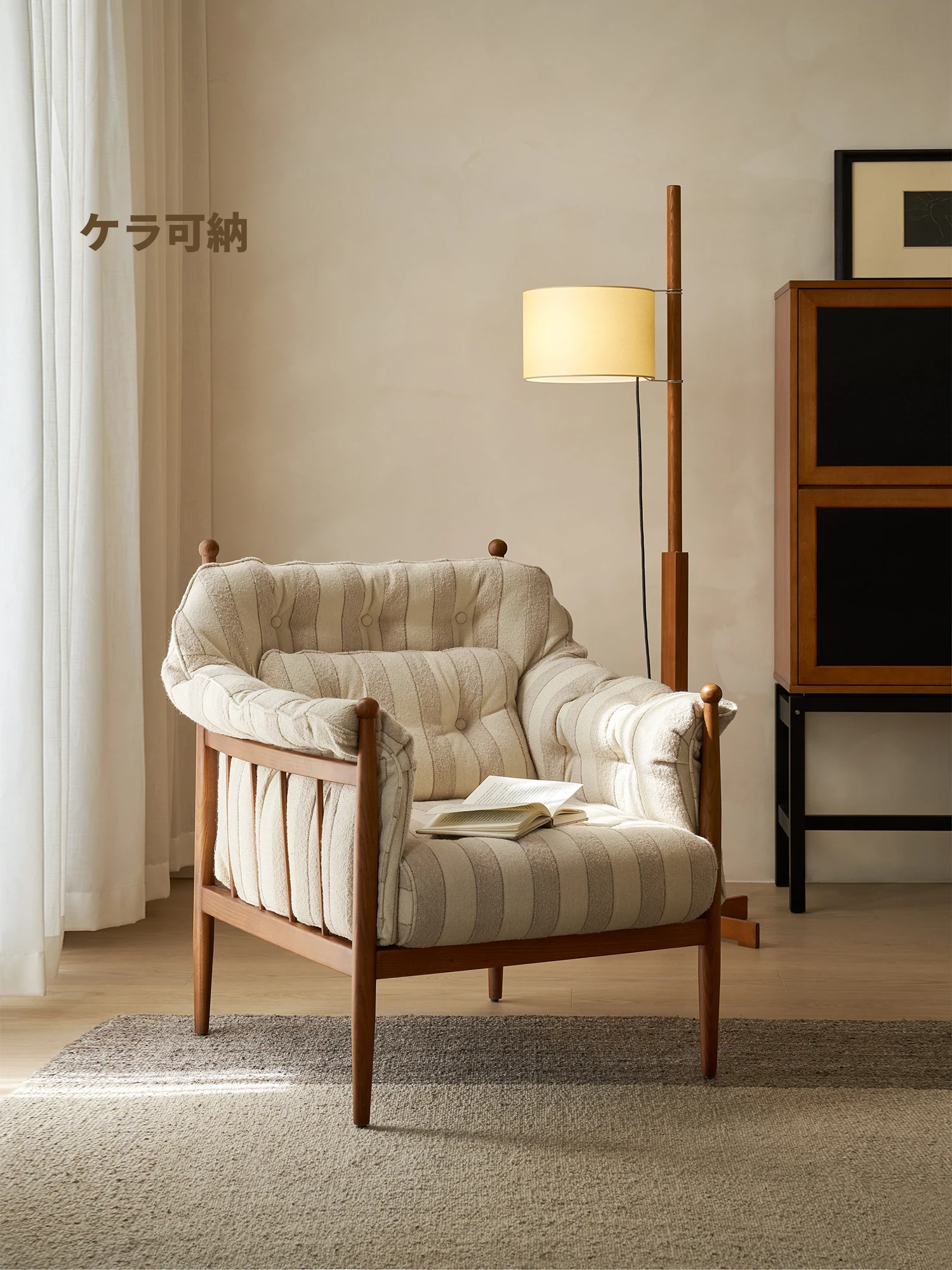 Kena可纳/牧野侘寂風シングルチェア|レトロ&ミニマルデザインのリラックス空間を演出!高品質の無垢材と羊毛ファブリックを使用した、あなたのリビングにぴったりのデザイナーズアイテム。