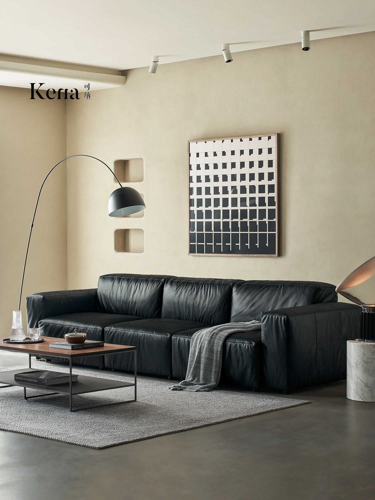 Kena可纳 左轮全真皮ソファー - おしゃれなブラックオイルワックスレザー使用!イタリアンミニマリズムのモジュール式デザイン、小型スペースに最適!快適さとスタイルを両立させた一品!